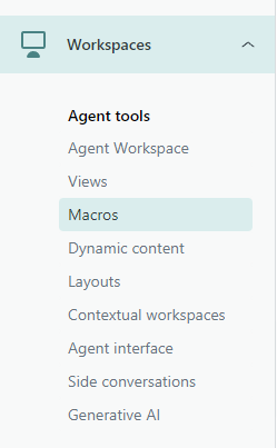 On the left hand sidebar, expand the list under "Workspaces". Choose "Macros".